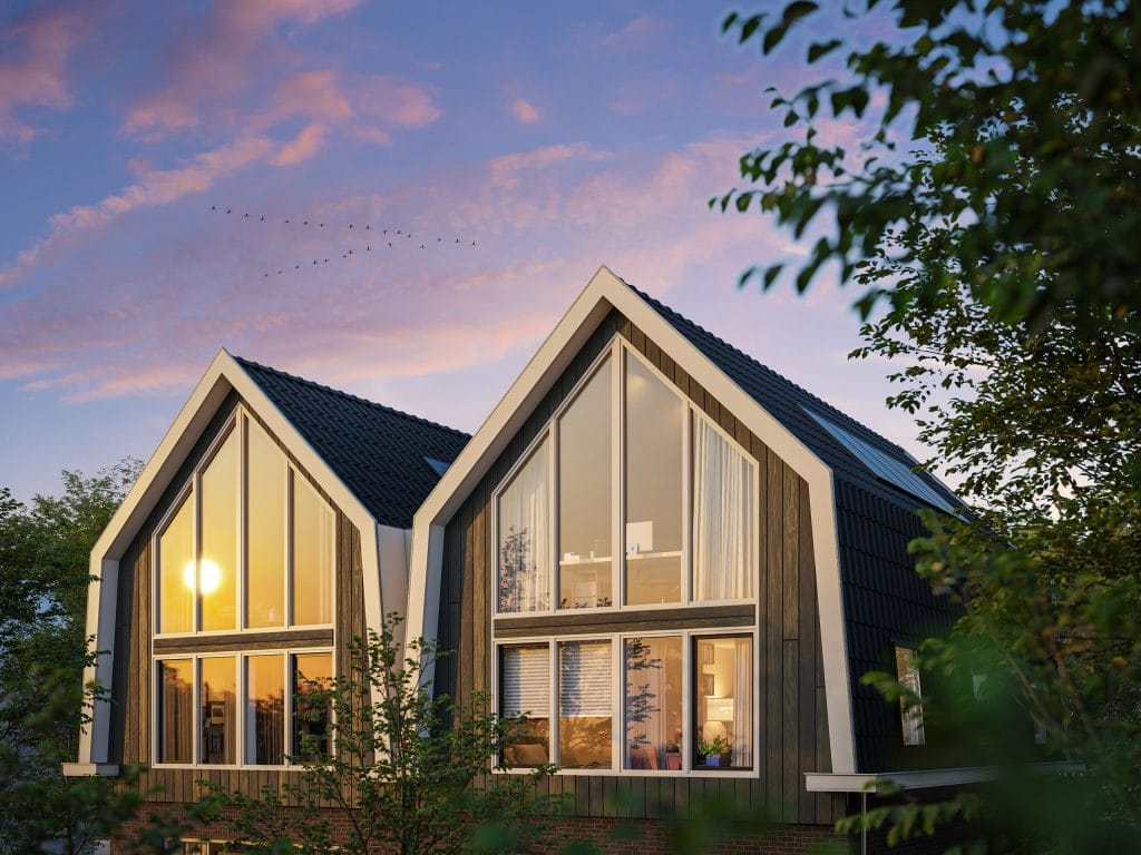 In het groene gebied achter deze huizen komt een stoere twee-onder-één-kap schuurwoning van 138 m2 en een kleinschalig appartementengebouw met 6 woningen van 117 tot 131 m2.